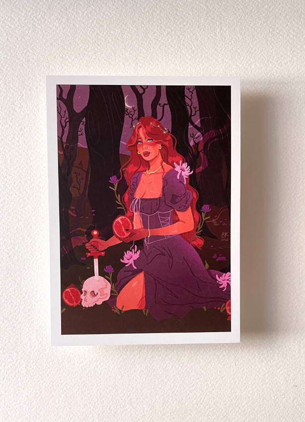 Persephone art print created by Brittany Keller. This spooky season print comes in 2 different sizes, 5x7 and 8x10 Printed on silk cover paper #110.